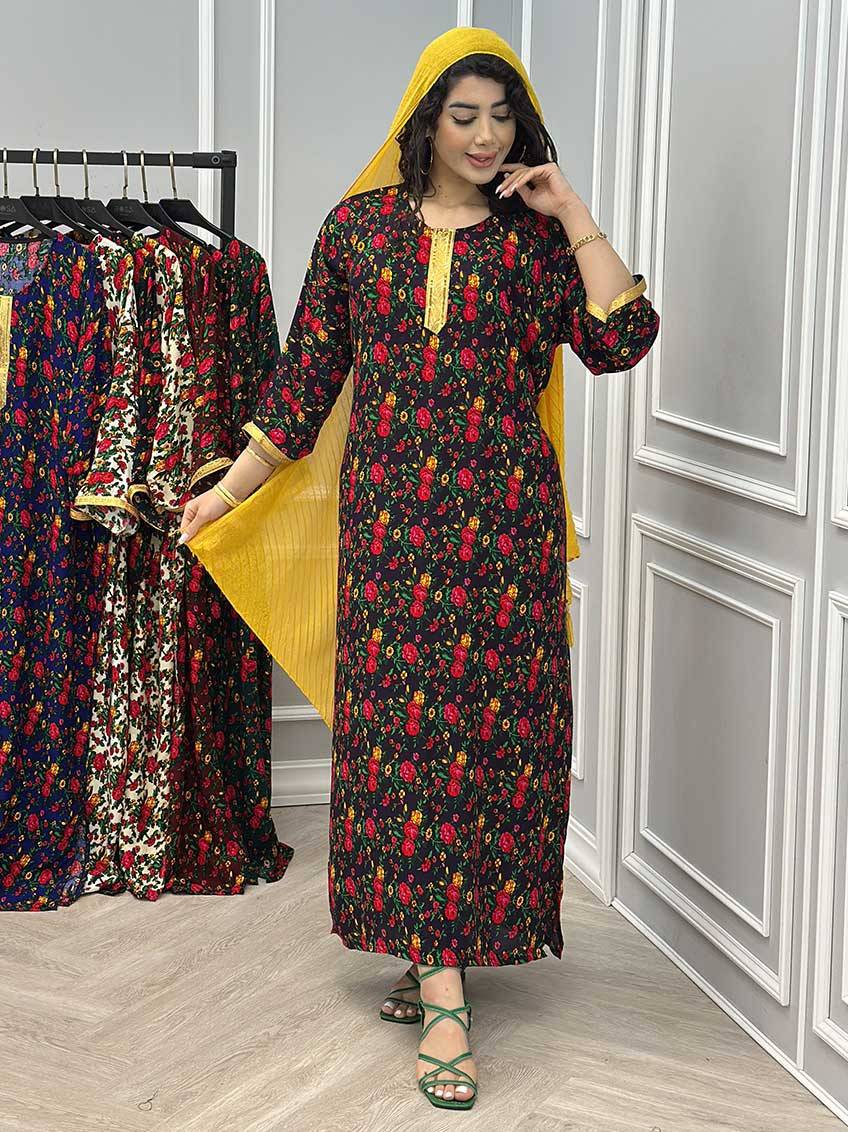 پیراهن ماکسی ساحلی بلند بته جقه سایزبزرگ جنس فلور