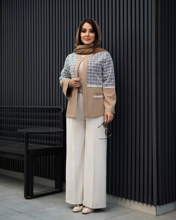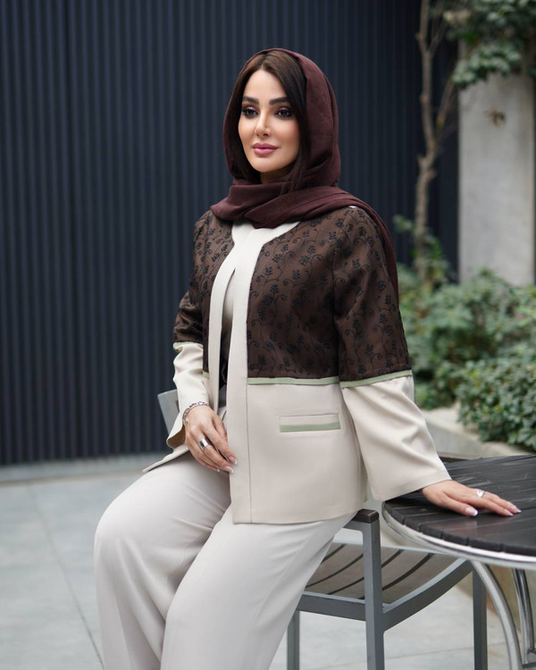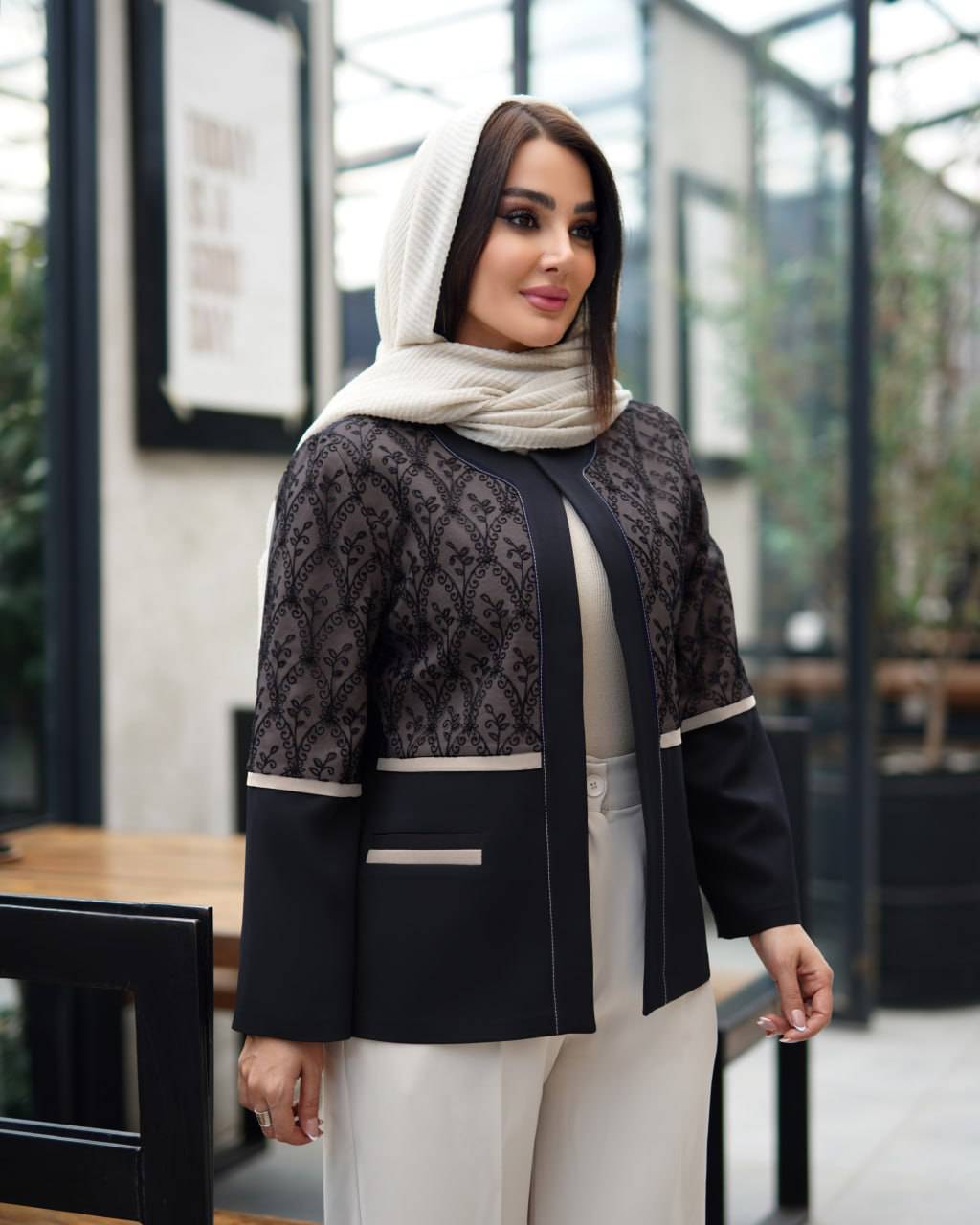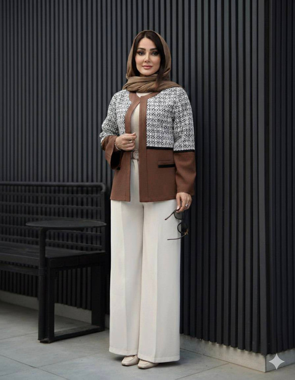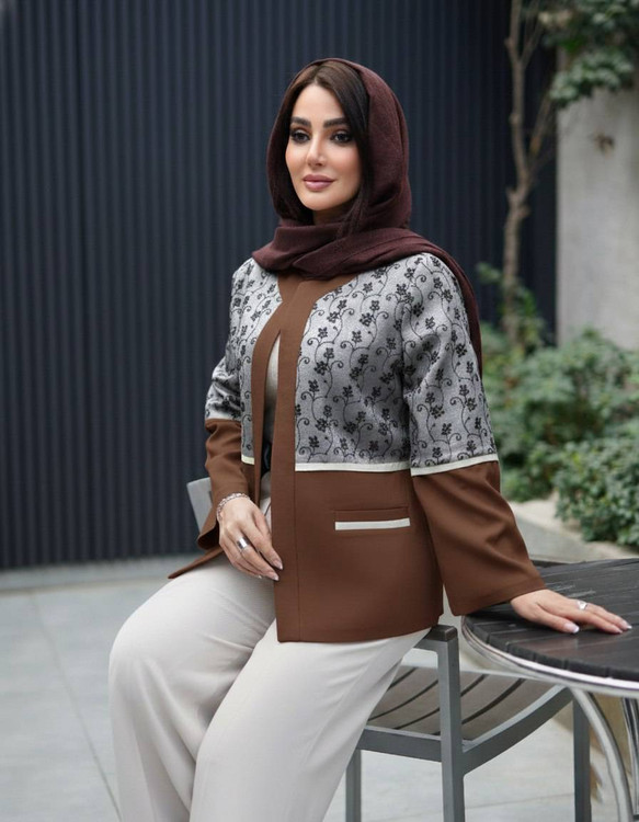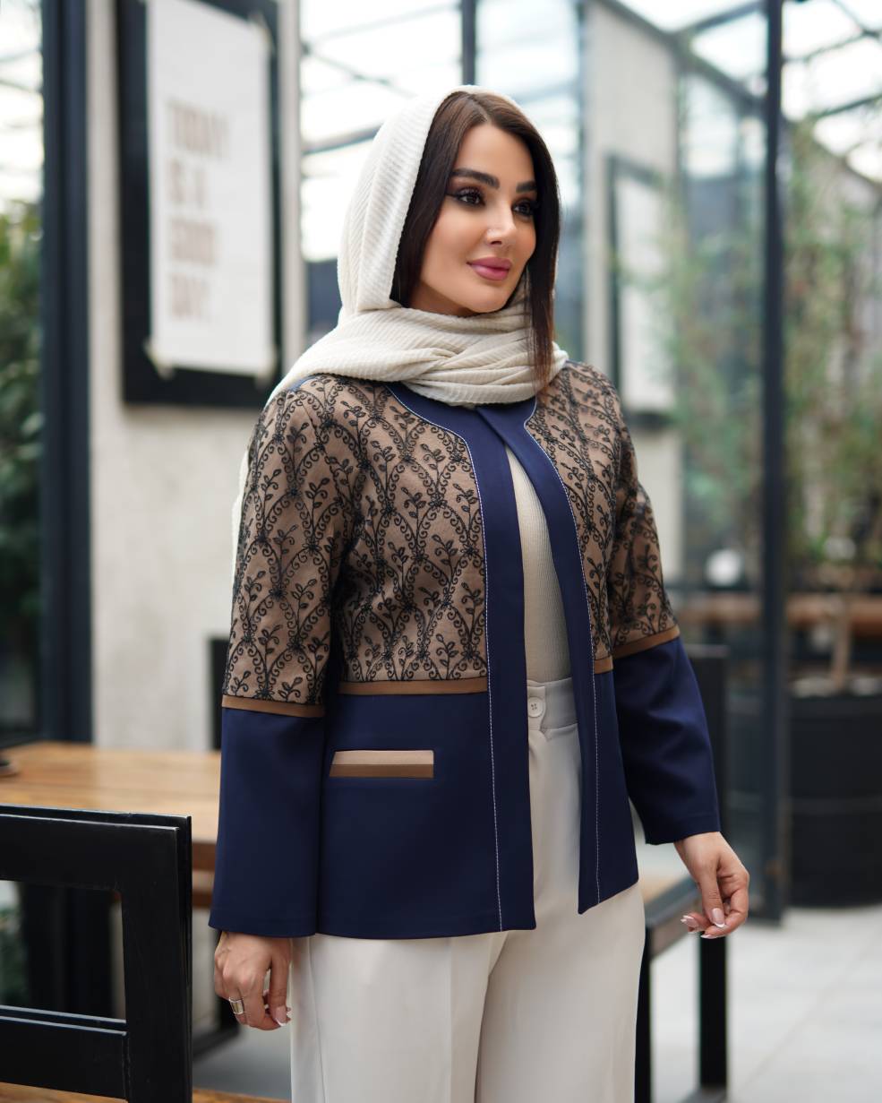 کت یقه گرد عیدانه مازراتی نخ توییست جلوی کار پرشین خورده