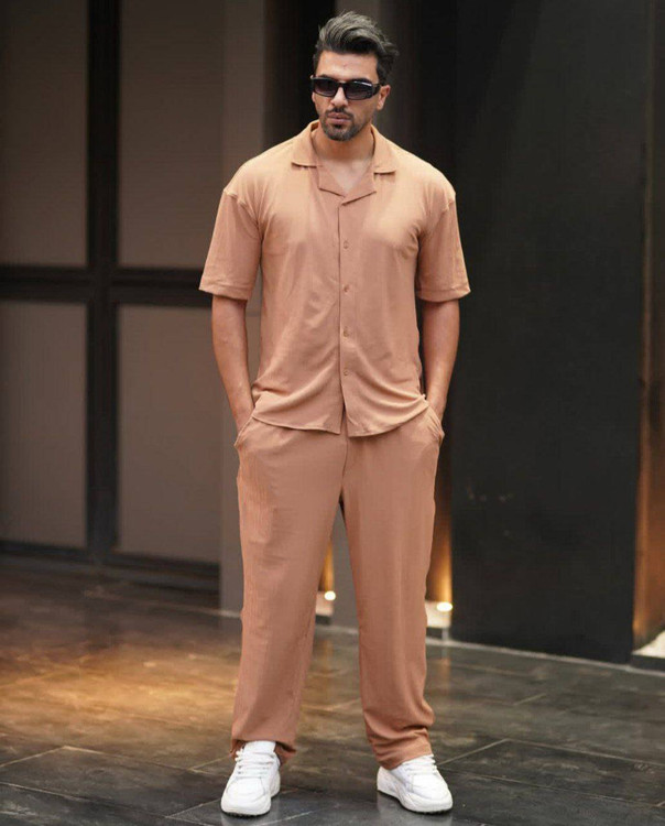 ست پیراهن شلوار مردانه مراکشی فیتله ای لارنس ZARA
