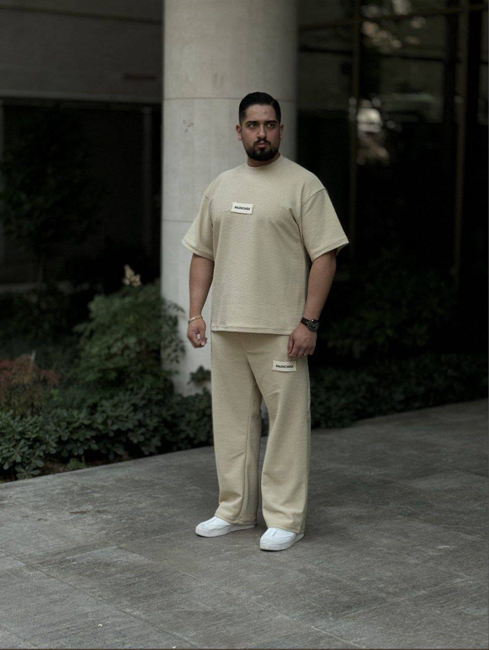 ست مردانه اسپرت تیشرت شلوار بیسکویتی کنف دوزی BALENCIAGA
