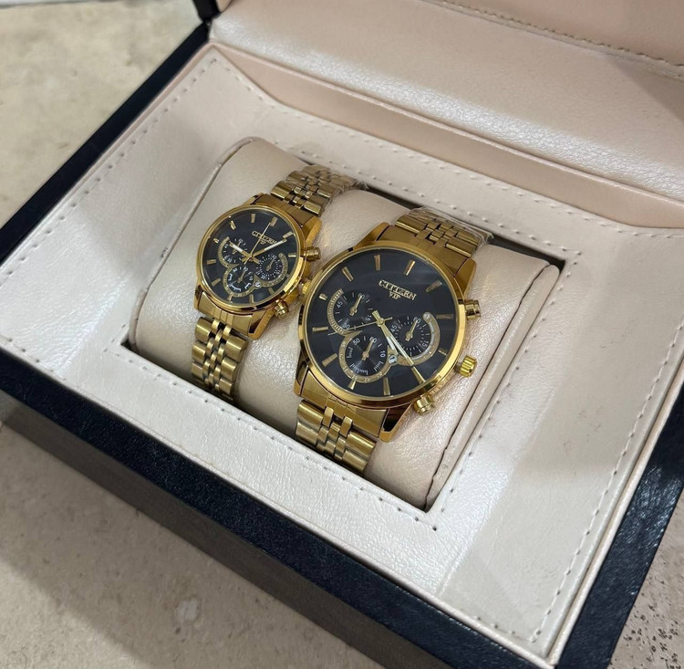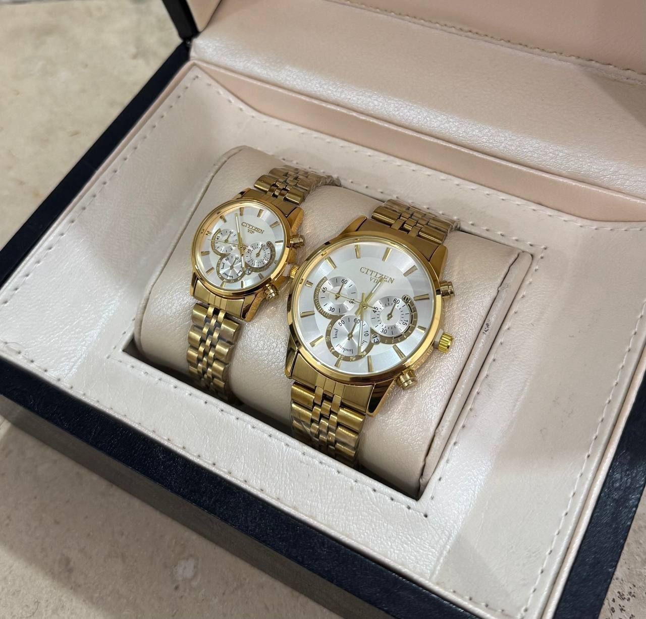 ست ساعت زنانه ومردانه سیتیزن CITIZEN VIP باتقویم روزشمار درجعبه کادویی