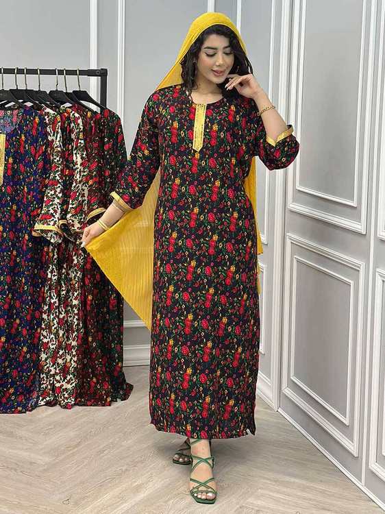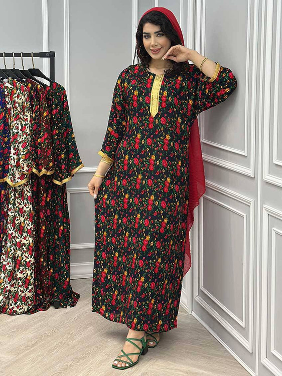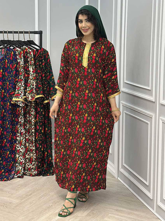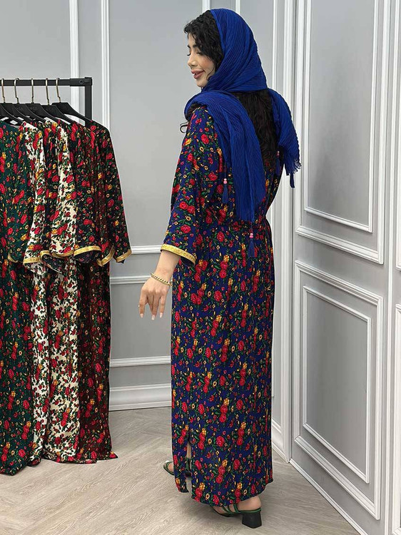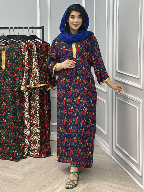 پیراهن ساحلی نوار طلایی نخ ترکمنستان درجه یک بدون آبرفت