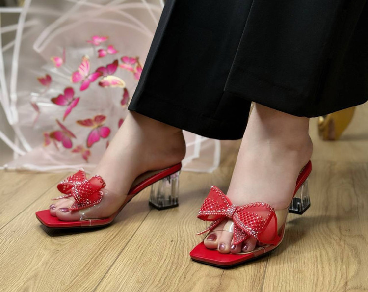صندل طلقدار پاشنه 5 سانتی پاپیونی رویه نگینی