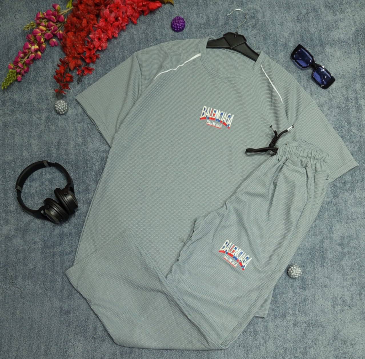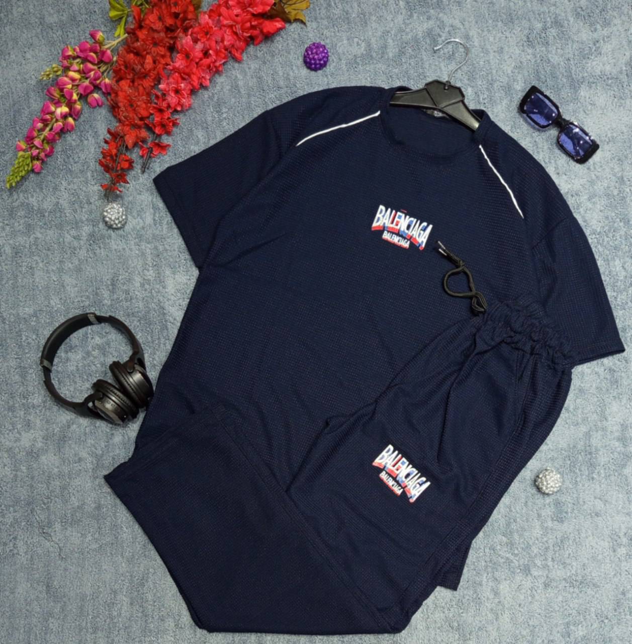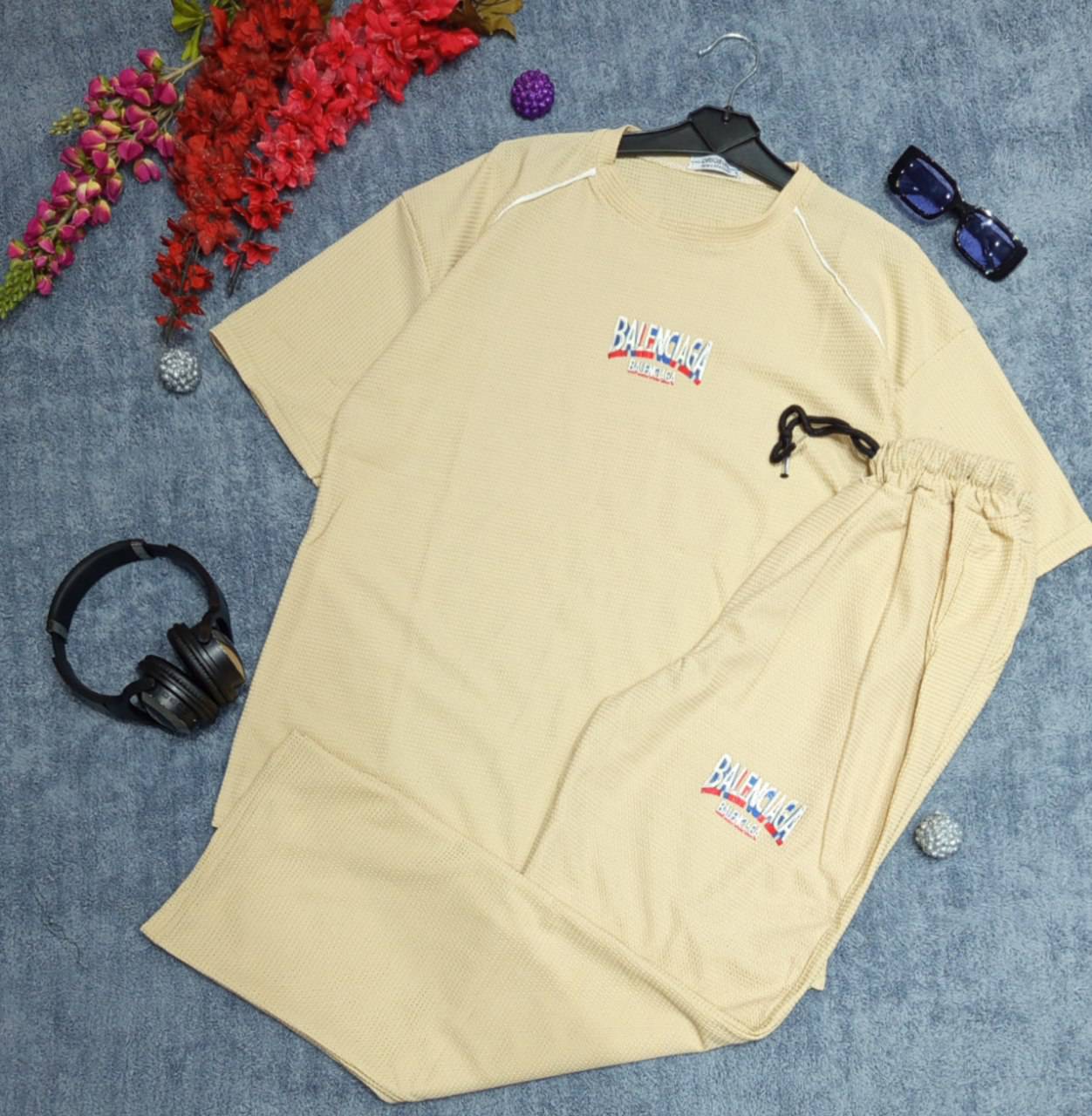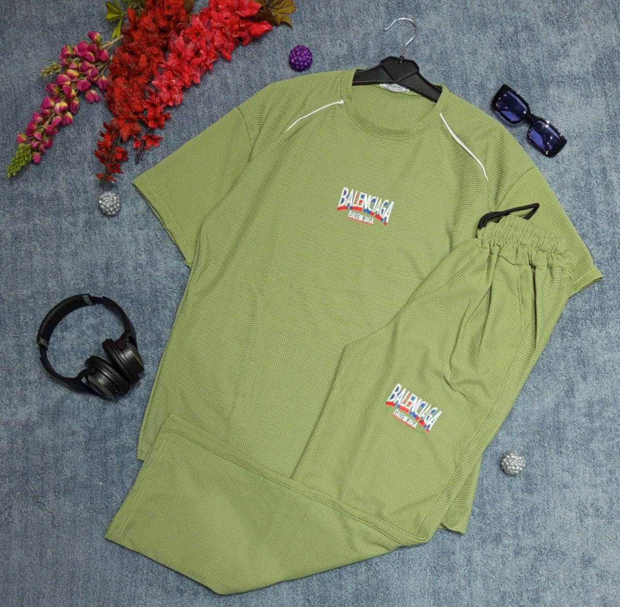 ست مردانه تیشرت شلوار بیسکویتی رنگی رنگی نوارمغزی دوزی بالنسیا