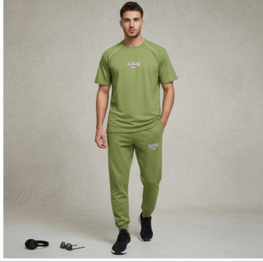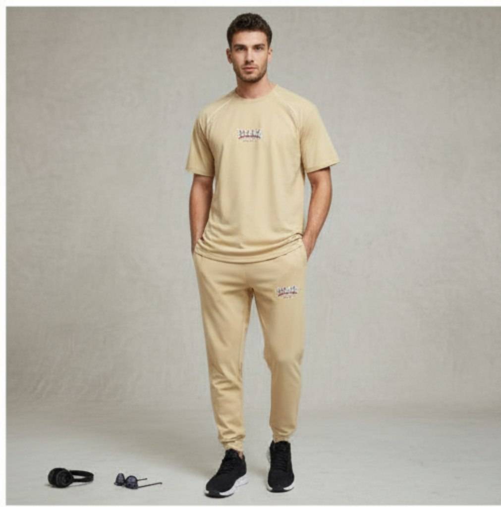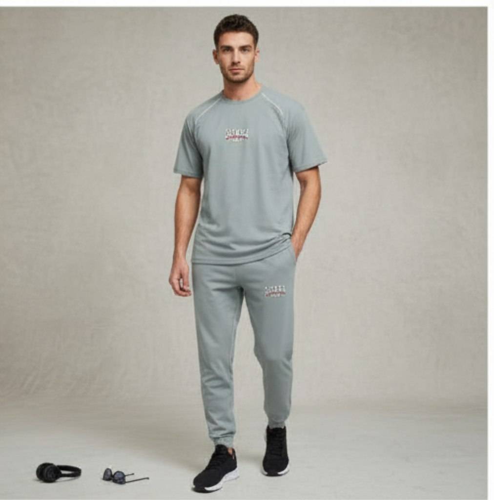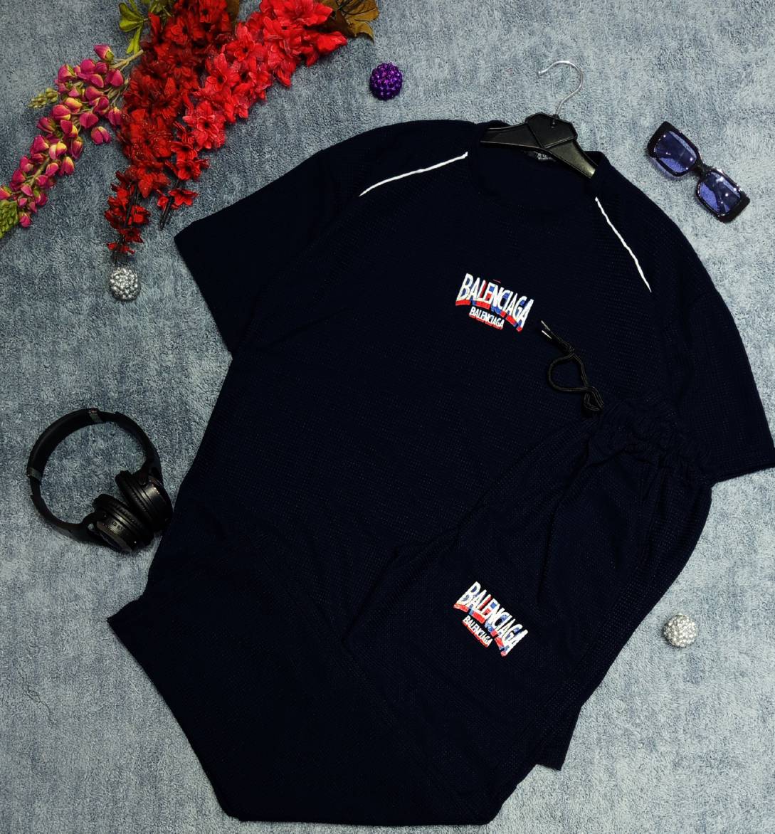 ست مردانه تیشرت شلوار بیسکویتی رنگی رنگی نوارمغزی دوزی بالنسیا
