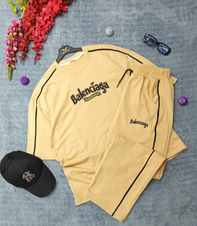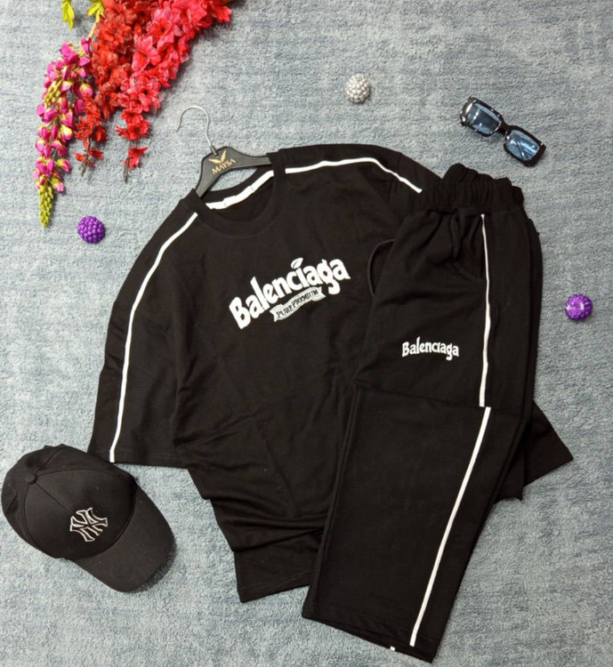 ست مردانه تیشرت باکسی و شلوار بگ گلدوزی سوپرنخ پنبه بالنسیا اورجینال اصلی