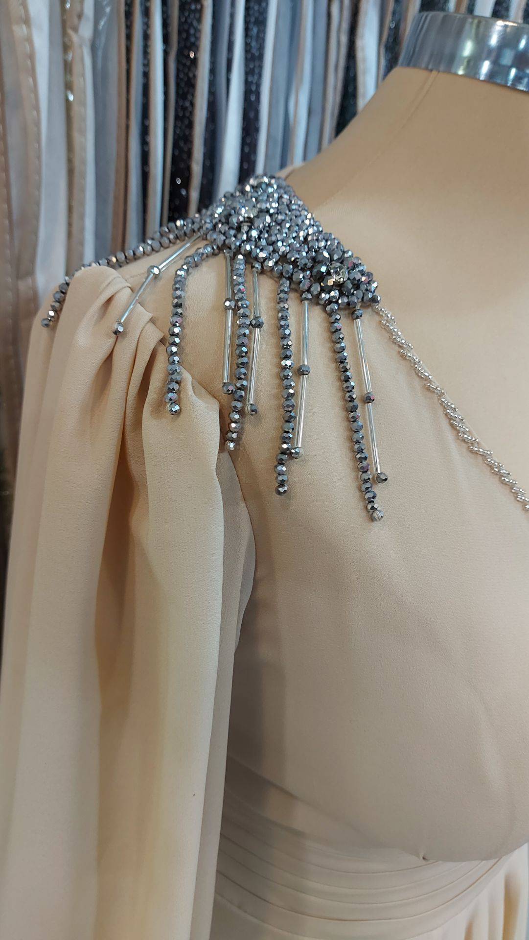 ماکسی مجلسی کاپدار حریر بامتریال سنگ کریستال مناسب مجلس عروسی و عقد ونامزدی