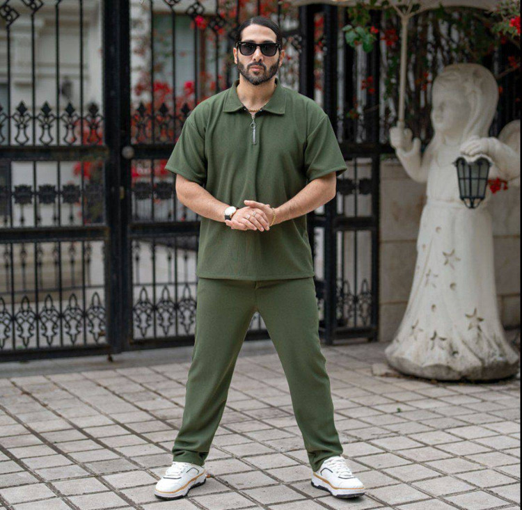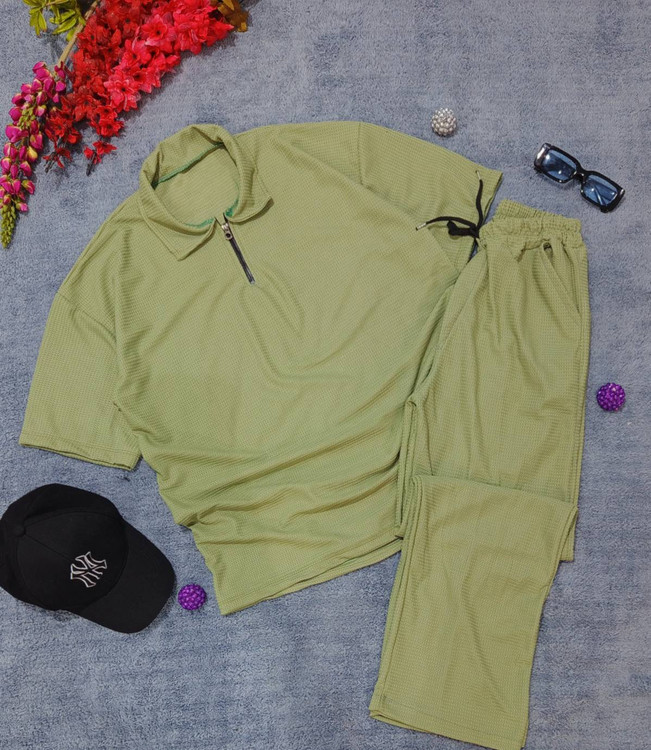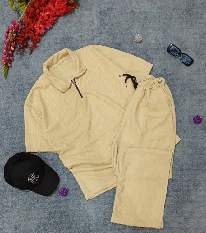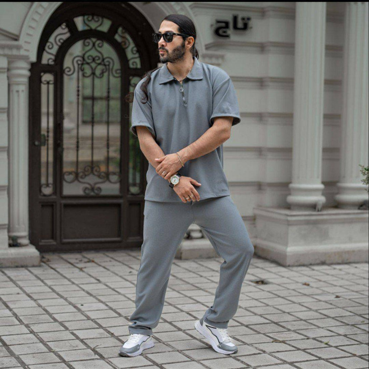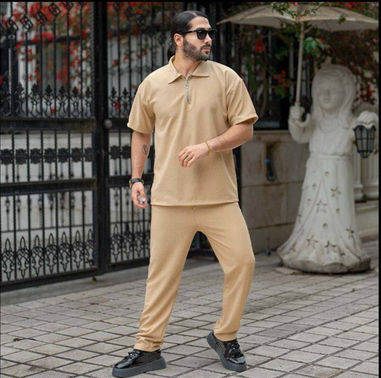 ست مردانه تیشرت شلوار نیم زیپ بیسکویتی نرم ولطیف