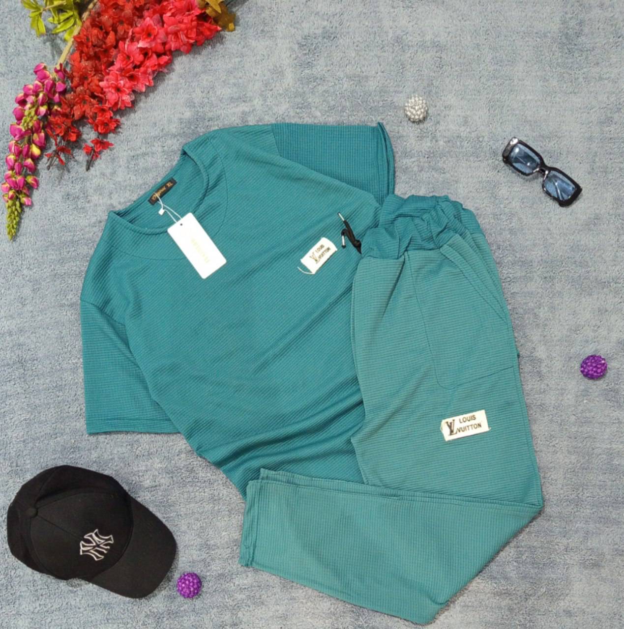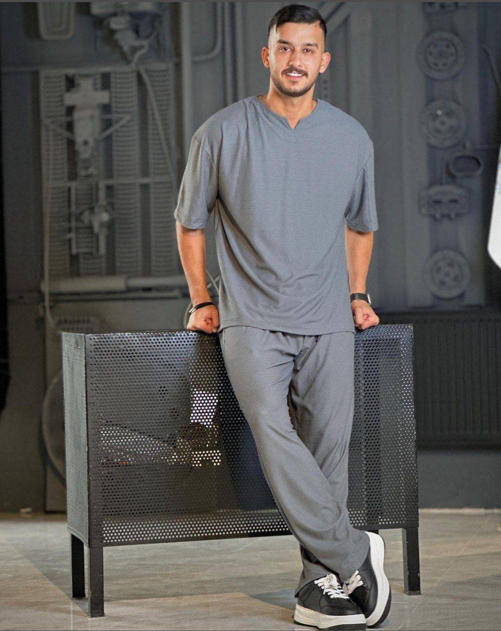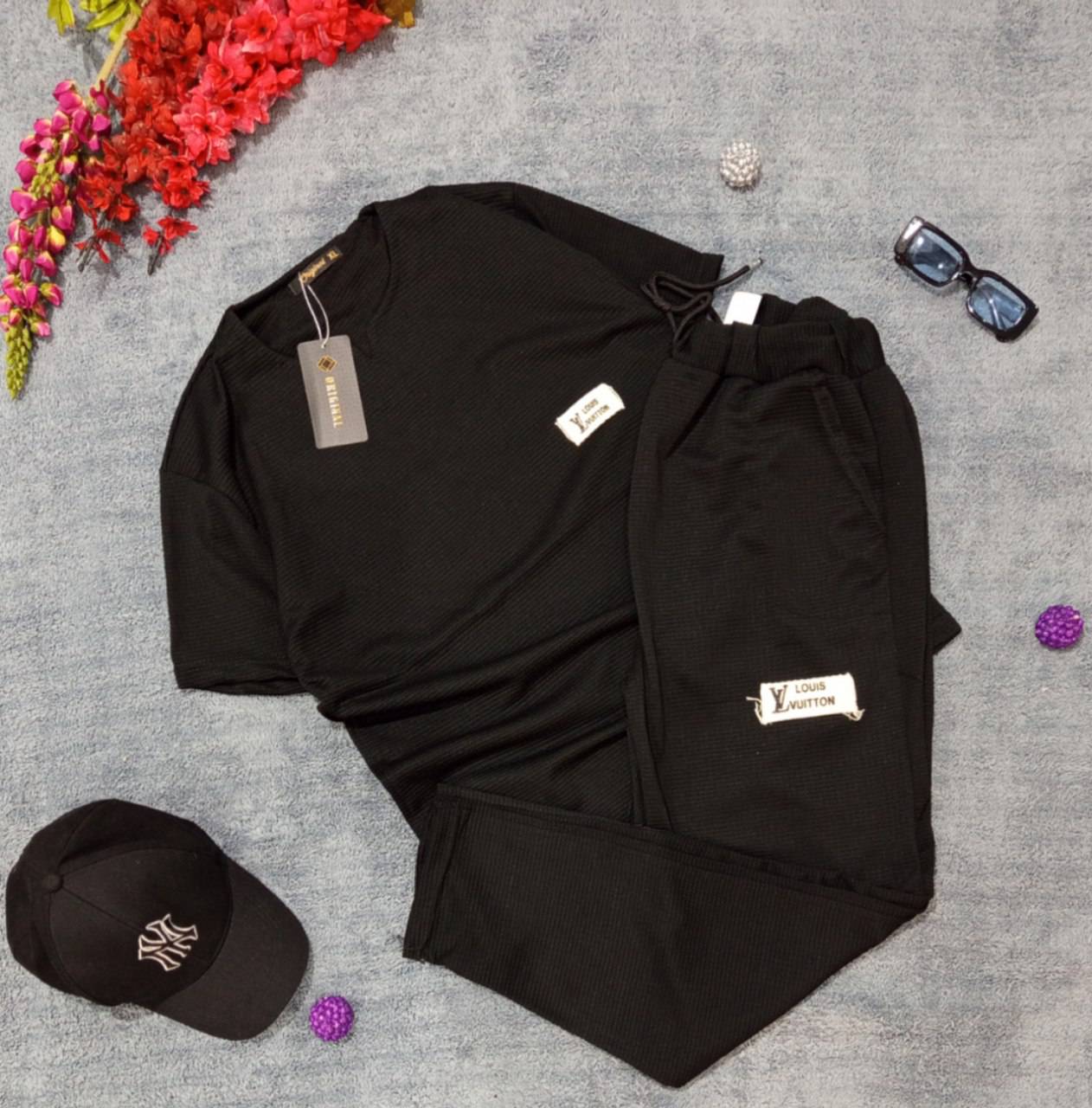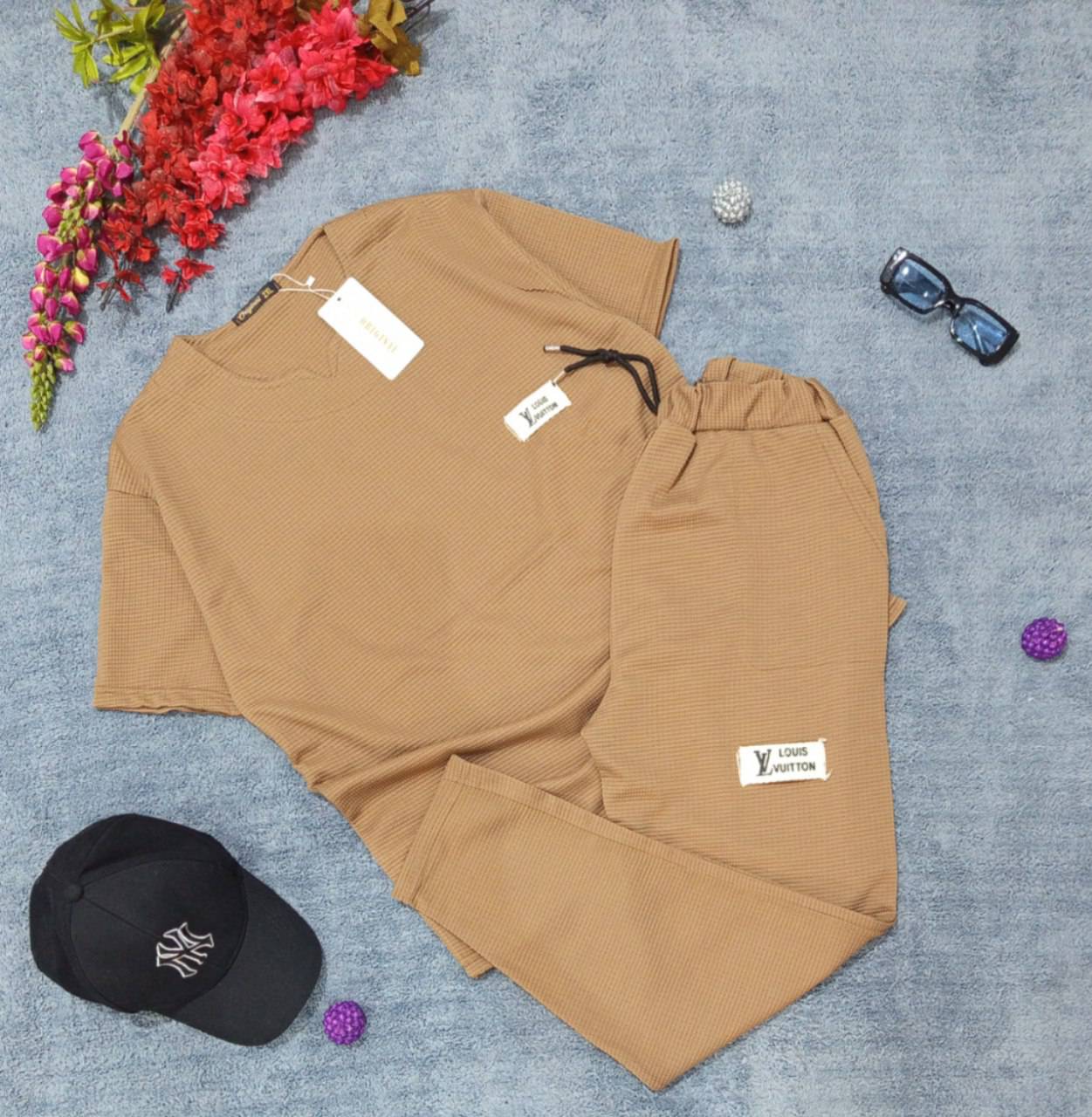ست مردانه تیشرت شلوار یقه کوبایی کنف دوزی بیسکویتی نرم ولطیف