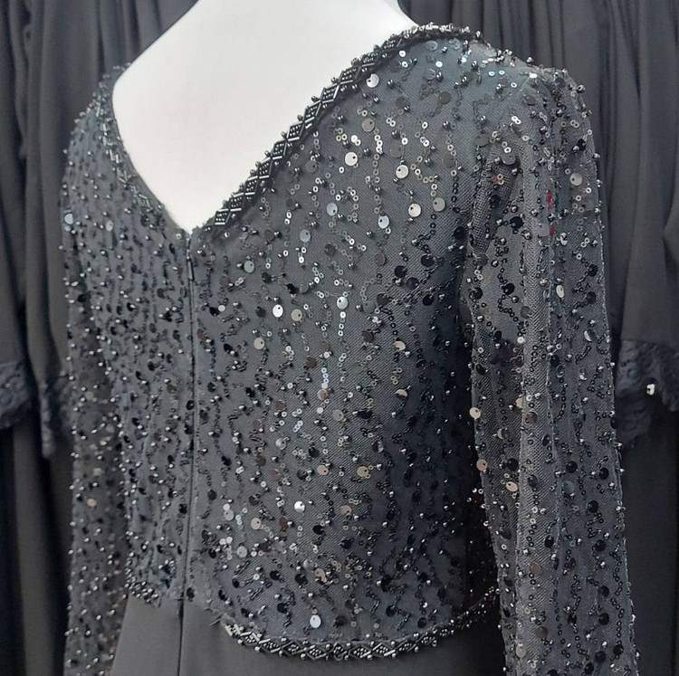 🧵جنس : بالاتنه جسمیکو و سنگدوزی دامن حریر جت بلک