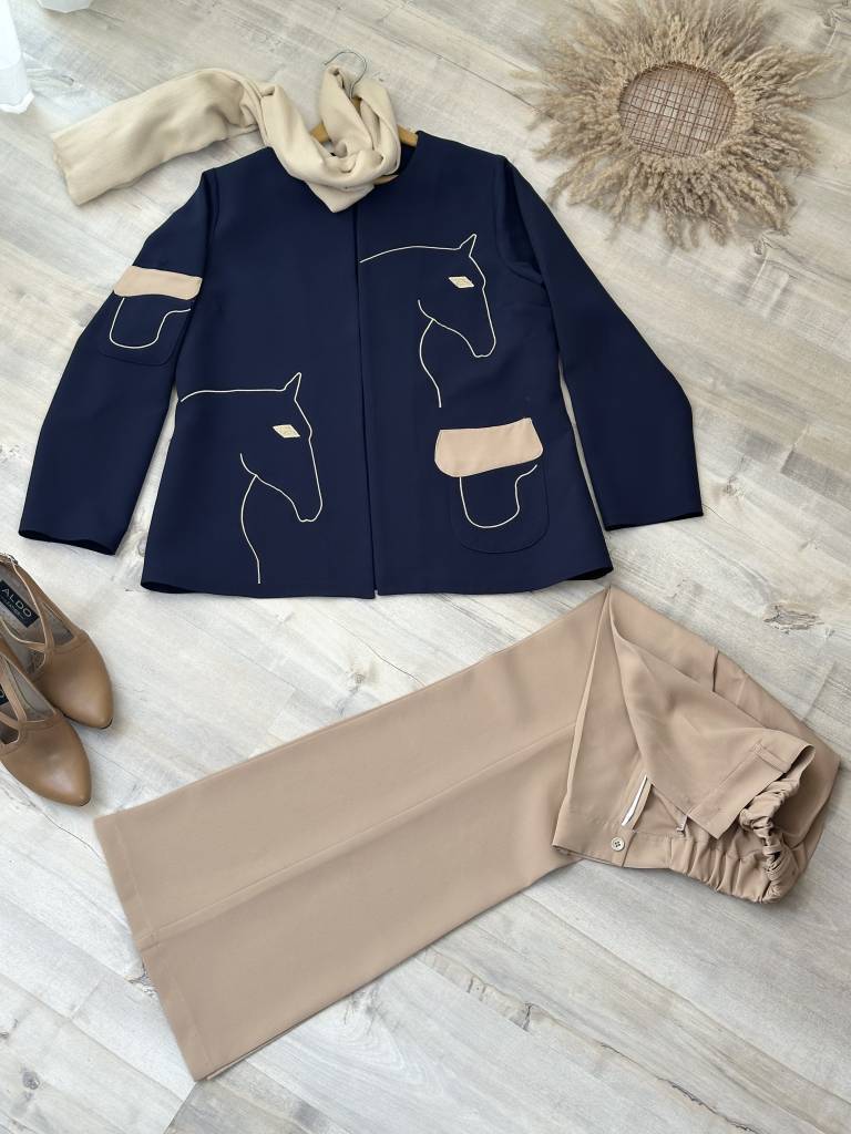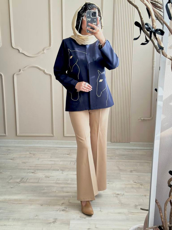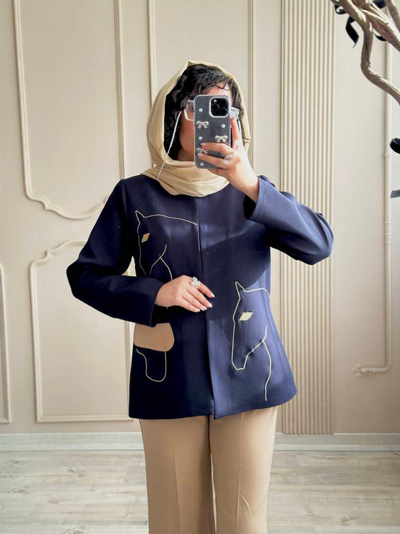 تیکه دوزی در قسمت پایین مانتو و بازو آستین
