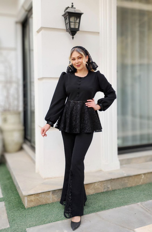✅پشت شومیز زیپ مخفی دارد و دکمه های جلو نمادین است