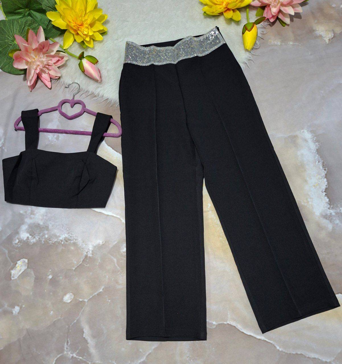 کمر شلوار و سرآستین پولک دوزی✅