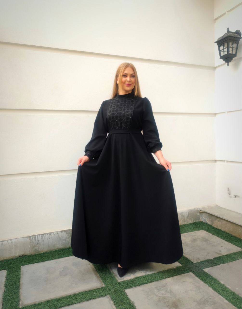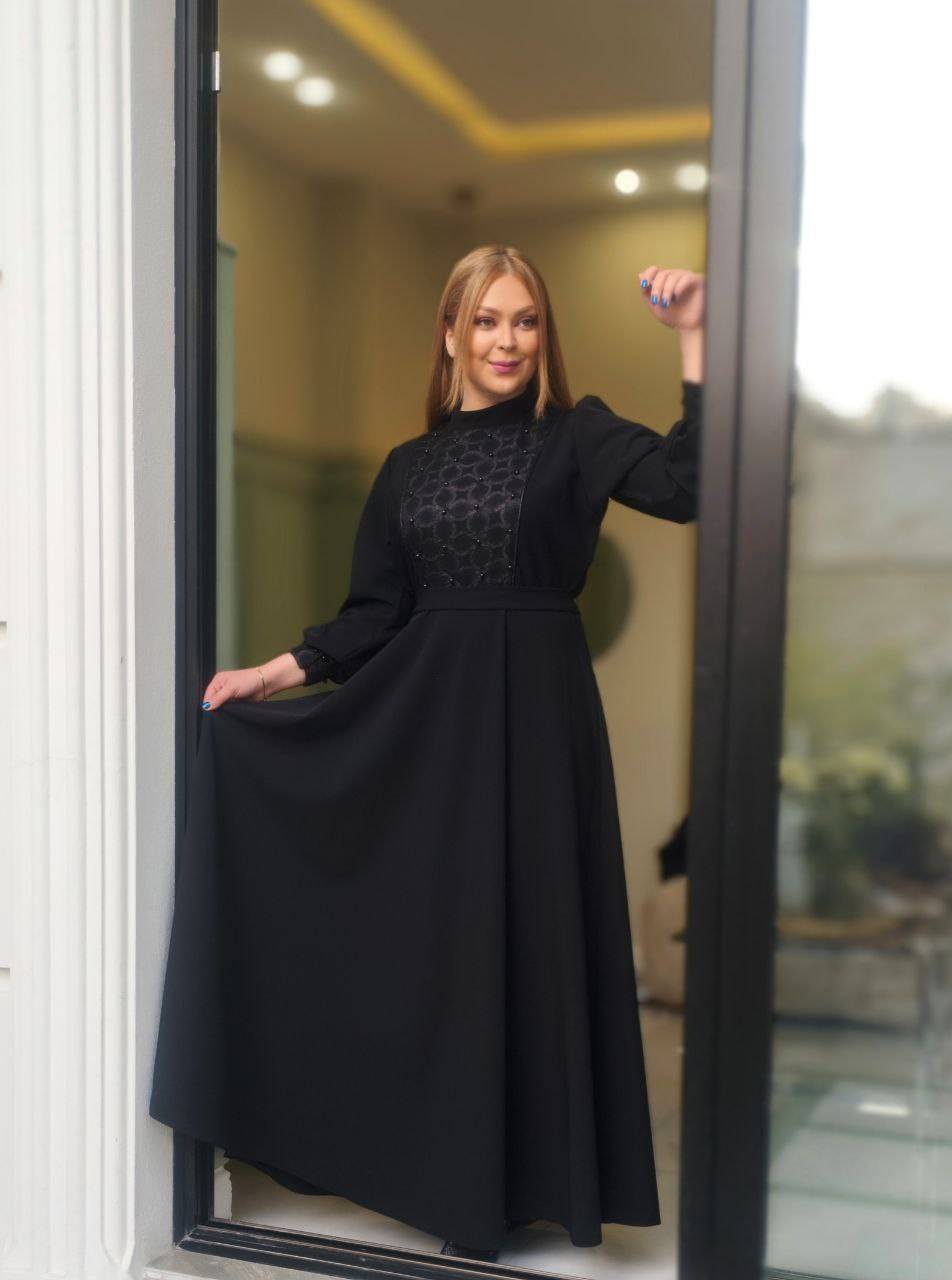 پیراهن مجلسی مزونی مازراتی مرواریدی نخ توییست وارداتی بدون دون شدن