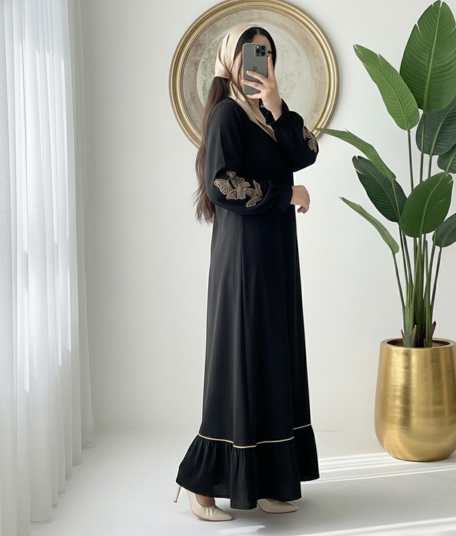 مانتو عبا گلدوزی پروانه دبل الیزه درجه یک لاکچری وخاص