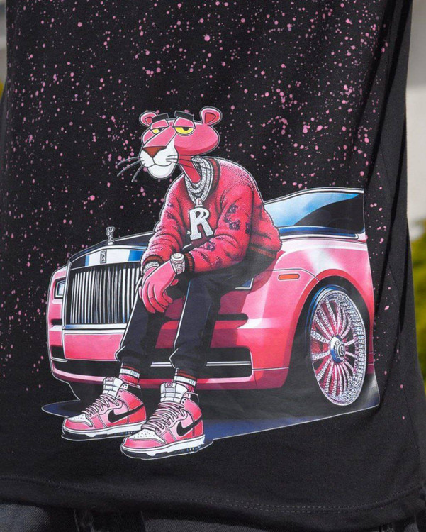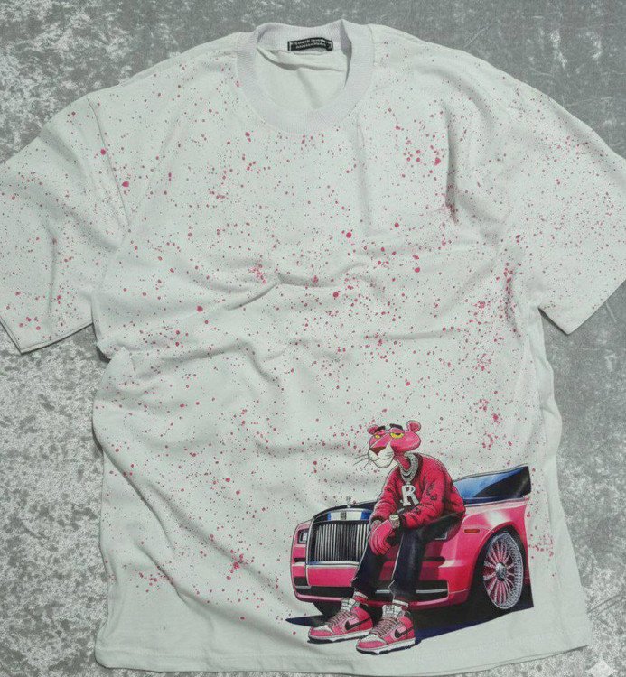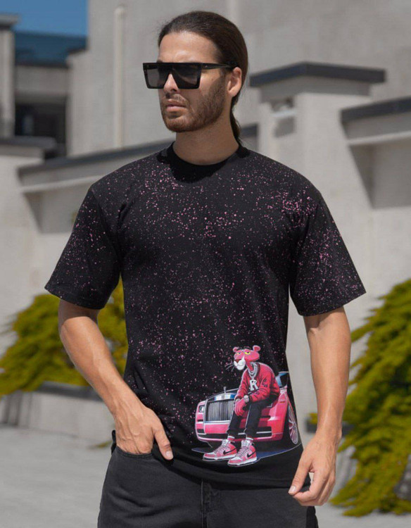 تیشرت قواره لش باکسی سوپر نخ پنبه طرح ترند وخاص پلنگ صورتی